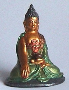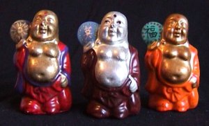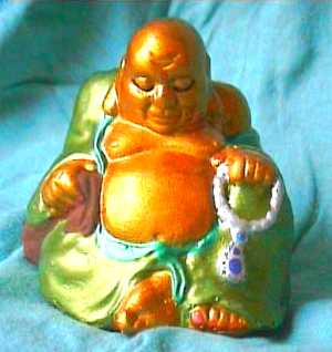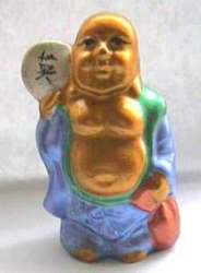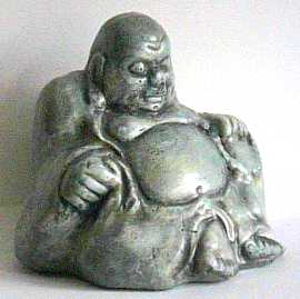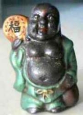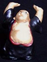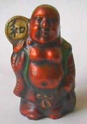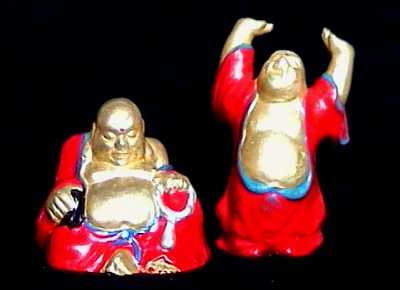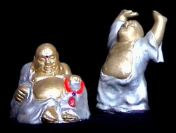 Setje boeddha's ![]() hoogte: 8 cm breedte: 9 cm Gapende boeddha: Hoogte: 10 cm Breedte: 7 cm De linker boeddha slaapt en heeft een zak en een ketting bij zich. De rechter boeddha gaapt en rekt zich uit. |