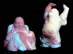 het beeldje, was deze mal redelijk snel versleten. Bij de slapende boeddha is er nauwelijks rek nodig om het beeld te lossen en deze mal bestaat nog steeds. Hieronder zie je nog een aantal losse beeldjes: |