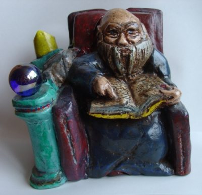 eerste tovenaarsbeeld is door mij met pottenbakkersklei gemaakt en daarna