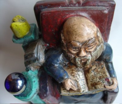 Tovenaar op stoel ~ Eriks werk ~ hoogte: 12 cm breedte: 12 cm diepte: 11 cm |