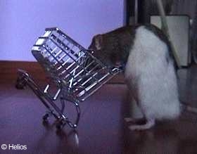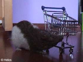 Djaman: Dit winkelwagentje is wel heel erg interessant, want er liggen snoepjes in. Alleen toen ik hoorde dat de baasjes een fotosessie met ons wilden gaan doen, ben ik snel weggerend. Gelukkig houden Helios en Iggy wel van fotosessies, dus zij spelen de hoofdrollen in dit spannende fotoverhaal. |