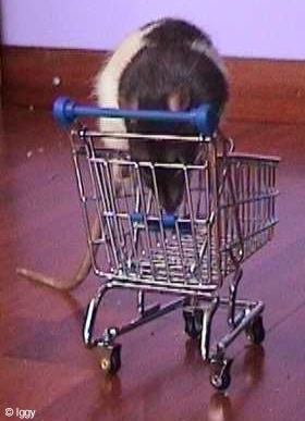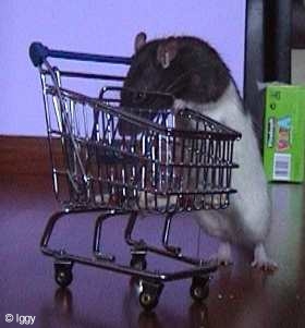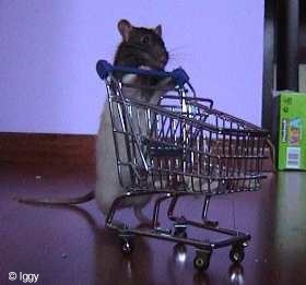 Iggy: Hoe kan ik het beste bij de snoepjes komen? | Ik spring erin. Huh? Nu is het karretje leeg.... |