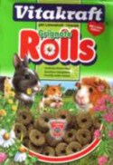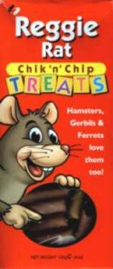 Grignote Rolls Bobmar: Dit is duizendmaal niets, bah! De snoepjes zitten in een hele grote doos (300 gram), dus dat zal wel weer extra voordelig zijn geweest ofzo. Het baasje zegt dat op de verpakking staat dat het voor alle knaagdieren is, maar van mij mag ze ze allemaal zelf opeten. Bruce: Ik vind dit ook niet lekker en Djaman en Iggy ook niet. Zelfs als het baasje ze in onze voerbak gooit, laten we alles liggen. Bobmar lust meestal alle snoepjes en dit is de eerste keer dat hij een snoepje niet lekker vindt. |