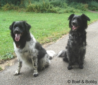 ![]() Bobby: Op de boerderij was het fijn en ik had daar veel vriendinnetjes. En puppies heb ik ook gehad, heel erg leuk! De mensen op de boerderij hadden me opgevangen en ik zou daar mogen blijven als ik geen ander baasje kon vinden. Daarom hebben ze me ook gecastreerd, en nog geen week na de operatie belden mijn nieuwe baasjes. Iggy: Tjee zeg, wat een verhaal! De rest weet ik wel, want de baasjes kregen telefoon van iemand die nog een stabijhond wist te zitten. Eerst wilden ze niet gaan kijken, omdat een stabij teveel jachtinstinct zou hebben. Maar jij was die stabij en toen ze hoorden dat je bij kippen, konijnen en schapen kunt, waren ze toch wel nieuwsgierig en wilden ze gaan kijken. Izumi: "Kijken kan geen kwaad," zeiden de baasjes van tevoren. En op de terugweg namen ze je mee. Bobby: Ik wist niet dat jullie toch wel belangrijk zijn hier en geen speeltjes voor mij zijn. Jullie zijn eigenlijk dus gewoon vee, net als op de boerderij? Izumi: Ehm... tja, zeg maar vee. Groot en sterk enzo. Vond je vee zo leuk dat je terug wil naar de boerderij? Bobby: Ik vind het hier eigenlijk wel leuk. Op de boerderij zeiden ze dat ik waarschijnlijk altijd een huishond ben geweest en dat ik het vast naar m'n zin zou hebben in een huis, en dat is zo. Ze zeiden ook dat ik altijd terug mag komen om op de boerderij te wonen als mijn nieuwe baasjes me niet bevallen, want de mensen willen niet dat ik ooit in een asiel terechtkom. Maar ik geloof niet dat de baasjes me ooit zullen terugbrengen. |