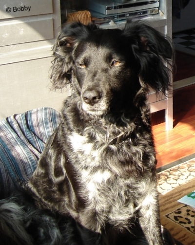 baasjes komen wonen. Ik was toen drie à vier jaar oud. Ik ben een kruising tussen een stabij en iets anders, hoogstwaarschijnlijk border collie. Voordat ik hier kwam wonen, heb ik al meerdere baasjes gehad. Dat snappen mijn baasjes niet goed, want volgens hun ben ik de allerliefste hond van de hele wereld! |